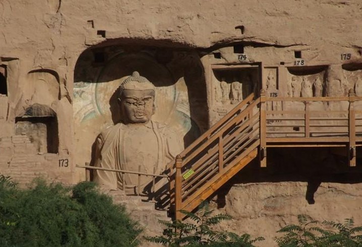 有第6窟造像一佛二菩薩保存完整,與北魏、西魏相比,造型趨于渾圓壯碩,人體比例已經(jīng)縮短。窟內(nèi)殘存壁畫中有與猿猴有關(guān)的本生故事。第172窟北壁下部完整保存了5身立佛,正壁有塑在木構(gòu)佛帳中的三佛坐像。木構(gòu)經(jīng)后代重修。