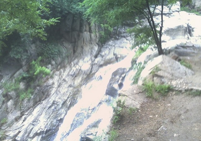 谷中怪石林立,一條小溪自谷中流過。在溪谷下游有三級斷崖,形成三級瀑布,水流直下,濺起萬朵銀花。在瀑布左上方,有一塊巨石疊立,高達10余米,遠望之,恰似一嫻淑的仙女在俯首凝思,人稱王母石。 相傳古時瑤池王母東巡泰山途經此地,見此處幽靜,便飄然臨下,于池中沐浴,流連忘返,化而為石,常駐池邊。后人便將王母沐浴處稱為“王母池”,并在池旁半山腰建起王母廟