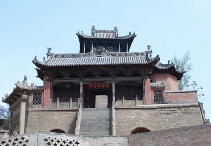 后院有玉皇殿,規(guī)模、結(jié)構(gòu)可與碧霞元君殿媲美,唯明廊東西兩壁各嵌有造像石刻1方,描繪佛門暮鼓晨鐘參禪拜佛故事。殿前有一方影壁,須彌座,壁柱以青石砌成,四角敷以三角形浮雕云龍石,中間綴以菱形石,上刻一大“佛”字。東西配殿各3間,分別為三圣祠和八仙堂。