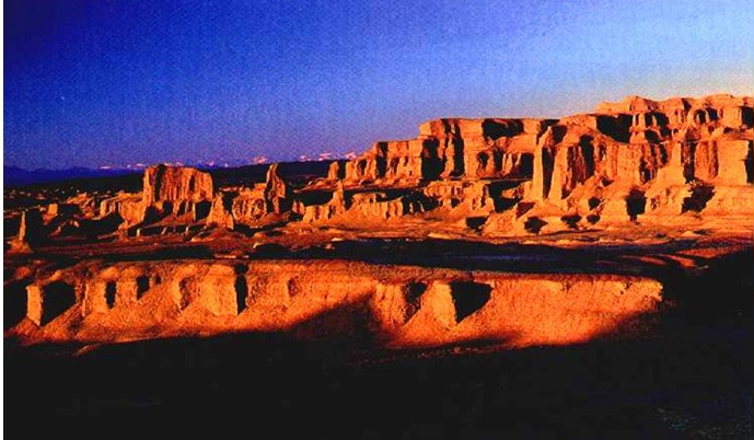 克拉瑪依市北行100公里,在烏爾禾鄉東南三公里,有一處獨特的風蝕地貌,定名為風城,人們習慣稱它為 “魔鬼城”。“魔鬼城”是一片雅丹地貌,面積10平方公里,地面海拔350米左右。