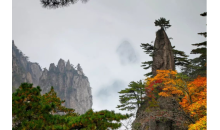 紅樹鋪云,成片的紅葉浮在云海之上,這是黃山深秋罕見的奇景。北海雙剪峰,當云海經過時為兩側的山峰約束,從兩峰之間流出,向下傾瀉,如大河奔騰,又似白色的壺口瀑布,輕柔與靜謐之中可以感受到暗流涌動和奔流不息的力量,是黃山的又一奇景。
