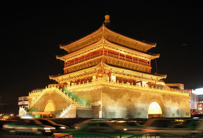 南京鼓樓占地面積9100平方米,高聳于鼓樓崗之上,北京東路、北京西路、中山路、中山北路、中央路五條主干道在此交匯,歷來就是南京的標(biāo)志性建筑之一。鼓樓分上下兩層,下層建成城闕樣式,高達(dá)9米,紅墻巍峙,飛檐迎風(fēng),中間有券門三道,貫通前后,上有“暢觀閣”題額。上層建筑,分為中殿和東西兩殿,滴水直落臺座之外。