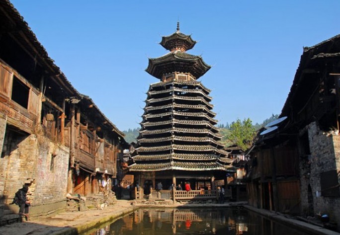 鼓樓頂層上安放在康熙南巡“戒碑”兩邊的一對龍鳳亭,相映成輝,古樸典雅,供游人觀賞。龍鳳亭高4米、圓3.5米,外觀呈塔形。亭為六角七級二層萊結(jié)構(gòu),外鍍金鉑,金光熠熠。龍鳳亭各級都有極精細(xì)雕刻的人物或植物、動物畫。從下至上,四級為人物,皆為武士出征,三國故事人物等;三級為花鳥,有葵花、天竹、青松、芭蕉、萬年青等。花鳥中還有虎豹、蛇蟲與之為伍;二層隔離刻有六大騎士,六根亭支架上,鳳上龍下,六龍抱柱,六鳳呈祥;亭子上部由飛鶴、荷花蓋頂。整個亭子,呈現(xiàn)出一幅幅優(yōu)美圖畫,造型緊湊協(xié)調(diào),生動精美,其雕刻工藝極為精湛,為世人所稱贊,具有極高的觀賞價值。