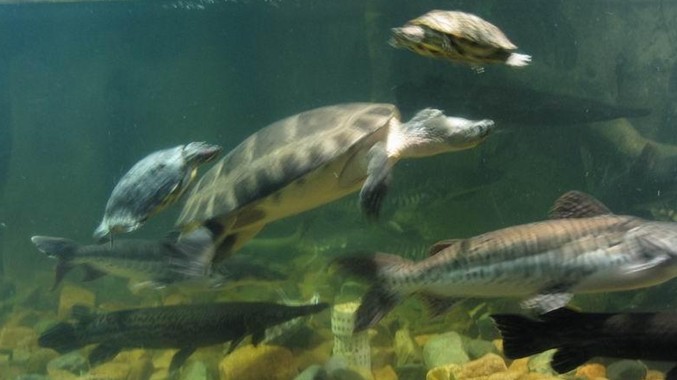 黑龍江省博物館海洋世界,總投資5000萬元,占地面積1500平方米,是由熱帶雨林、海底隧道和海洋珊瑚礁等組成,引進(jìn)了世界各地名貴稀有的水生生物200多種,其中魚類6000多尾。它們來自長江中瀕臨滅絕的中華鱘,美國密西西比河的匙吻鱘,巴西亞馬遜河的水中之王海象魚,兇猛的鯊魚,展翅的牛鼻魚工,溫順千年大海龜?shù)取?/p>
