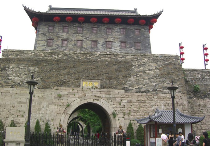 南京中華門位于南京城正南,明洪武二年至八年(1369~1375)于南唐都城和南宋建康府城南門舊址拓建而成,始稱聚寶門,是中國古代防御性的建筑。它的南面有雨花臺作為天然屏障,門前后有兩支秦淮河水橫貫東西,前臨長千橋,后倚鎮(zhèn)淮橋,地勢險要,為南京城南交通咽喉所在。南京中華門甕城是中國現(xiàn)存最大的城堡式甕城(截至2012年),也被認(rèn)為是世界上保存最完好、結(jié)構(gòu)最復(fù)雜的古城堡。