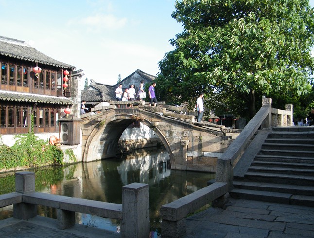周莊在蘇州管轄的昆山之西南,周莊古稱貞豐里。北宋年間,周迪功朗(官名)在此辟田設莊,于宋元佑元年(1086年)舍田宅200余畝捐于當地全福寺,遂有周莊之稱。而正式定名為周莊鎮,周莊卻是在清康熙初年。周莊位于上海、蘇州之間的江南水鄉腹地。贊美的人說那里是鎮為澤國,四面環水,港汊分歧,湖河聯絡,咫尺往來,皆須舟楫。宛如一顆鑲嵌在淀山湖畔的明珠。近日更因著名畫家陳逸飛將周莊畫入油畫中,在美國鈕約拍賣得了好價錢。人們紛紛要追尋這江南水鄉美景,老外紛至沓來,周莊一時成了旅游熱線。