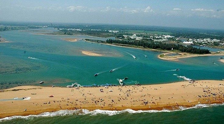 玉帶灘是一條自然形成的地形狹長的沙灘半島,位于海南博鰲,外側南海煙波浩淼一望無際,內側萬泉河、沙美內海湖光山色,內外相映,構成了一幅奇異的景觀。玉帶灘全長8.5公里,地形地貌酷似澳大利亞的黃金海岸和墨西哥的坎昆,在亞洲區可謂僅此獨有。