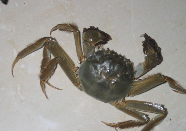 陽澄湖蟹,歷來被稱為蟹中之冠。這與陽澄湖的特殊生態(tài)環(huán)境有關(guān)。水域百里方圓,碧波蕩漾,水質(zhì)清淳如鏡,水淺底硬,水草豐茂,延伸寬闊,氣候得宜,正是螃蟹定居生長最理想的水晶宮。所以,陽澄湖蟹的形態(tài)和肉質(zhì),在螃蟹家族中,大大的與眾不同。形態(tài)有四大特征:一是青背,蟹殼成青泥色,平滑而有光澤﹔二是白肚,貼泥的臍腹甲殼,晶瑩潔白,無墨色斑點(diǎn)﹔三是黃毛,蟹腿的毛長而呈黃色,根根挺拔﹔四是金爪,蟹爪金黃,堅(jiān)實(shí)有力,放在玻璃板上,八足挺立,雙螯騰空,臍背隆起,威風(fēng)凜凜。肉質(zhì)肥嫩鮮美,食過后再食其它再好的佳肴名菜,都會(huì)索然無味。就在離開陽澄湖數(shù)公里的雉城湖,湖蟹產(chǎn)量亦多,但受海潮影響,肚不白,毛微黑,肉質(zhì)遠(yuǎn)不如陽澄湖蟹好吃。同一境域的湖蟹,尚且不能相比,其它地區(qū)的螃蟹,更是大為遜色了。因此,陽澄湖蟹在海外久享盛譽(yù),被稱為"中華金絲絨毛蟹。