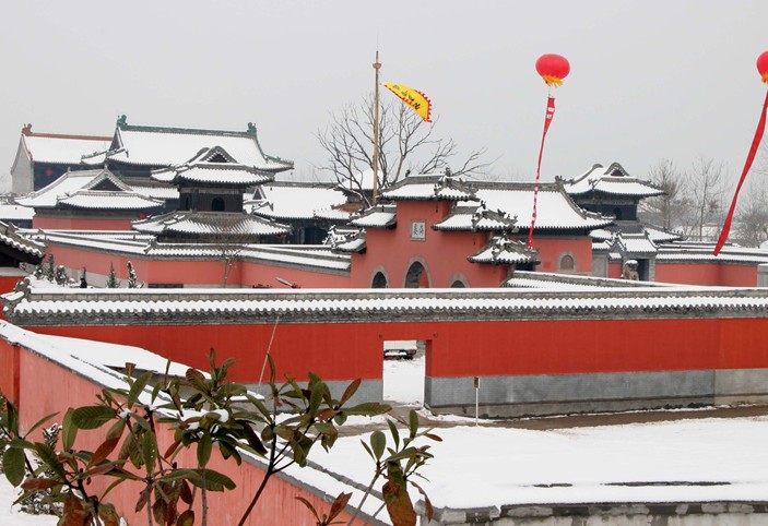 中軸線北端是禹王殿,也叫觀音殿。版權所有山東聊城聊之旅國際旅行社有限公司,轉載必究!禹王殿屬于宮式大作,重檐硬山,屋面飾黃色琉璃筒瓦和龍吻,大殿分上下兩層,占地面積360平方米,面闊七間,進深五間,坐落在青石板筑成的1米高的須彌臺上,殿高20多米,是"龍王廟行宮"內最高的殿宇。底樓額枋上懸掛"功崇利薄"鎦金大字的朱紅匾額一塊。大殿的明間南海觀音趺坐在蓮花座之上。二樓的樓板是由304塊縱橫組合的繪有龍風呈樣彩色畫面的木板吊制而成,對對龍風翩翩起舞,多姿多態,各不相同。東西兩頭暗間,分屬方丈室和藏經室,由暗間扶梯登樓即可進入頂層。大禹王像就置于頂層的中央。乾隆六下江南,五次臨幸于此都是夜宿于這殿宇樓上,人們稱為"正宮"。與正宮相呼應的是位于正宮兩側的東宮和西宮,這是隨同南下的皇妃們居宿的地方。院落內植有柏、柿、桐、椿、槐、楊六樹,取意"百市同春""百世懷楊",象征大清江山和中華民族世世代代興旺不衰。雖經近三百年來風雨剝蝕,柏樹、柿樹、槐樹、楊樹仍蒼勁挺拔,枝翠葉綠,其中的黃楊樹(又名千年矮),進入《世界名花草大全》。