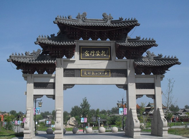 過禪門進入第一道院落,版權所有山東聊城聊之旅國際旅行社有限公司,轉載必究!中心位置是乾隆皇帝下旨建造的御碑亭,平面呈六角形,面積53平方米,十二根朱紅抱柱擎托著六角重檐攢尖頂的傘狀黃色琉璃瓦屋面。因其為皇家"敕"建,黃色瓦飾,形狀如傘,人們又稱之為"皇傘"。碑亭正中聳立著一塊5米高的御碑,碑帽的正面鐫刻"圣旨"二字,碑身正面刻有圣旨全文,主要內容記敘了康熙、雍正皇帝建廟的原由和修建的經過。碑身的背面刻有乾隆22年第二次下江南時,第一次下榻此處所題寫的御筆詩文:"皇考勤民瘼,龍祠建皂河,層甍臨聳壩,峻宇鎮回渦,毖祀精誠達,安瀾永佑歌,彭城將往閱,宿頓此經過,捍御方多事,平成竟若何,所希神貺顯,沙刷輯洪波。"碑身、碑帽的兩面分別鐫刻有乾隆27年、30年、45年、49年下榻此處所題寫的御筆詩文。碑座的赑屃獸,卷縮蹲臥,堅實有力。碑帽上緣和碑身四周精雕細刻著生動傳神的五爪巨龍,流云裊裊,瑞氣千祥,造型精致。整塊御碑刻滿了乾隆皇帝的圣旨和詩文,飄逸灑脫,端正秀氣,國內極為罕見,文物價值甚高。尤其是御碑亭的設計,造型大方,凝重端莊,內外施柱,黃瓦紅飾,充分顯示了皇家建筑的特點、風格以及獨有的高貴氣質。特別是"皇傘"的攢尖頂,下端為倒的荷盆,中間六角圓柱上精刻著形象各異的十八羅漢像,頂端放置著象征皇帝至高無上的夜明寶珠,使整個御碑亭在第一進院落中耀眼奪目,金碧輝煌。