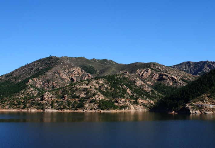 打虎石水庫位于寧城縣西部,老哈河支流 ── 黑里河下游,控制流域面積540平方公里,總庫容1.2億立方米,是內蒙古自治區境內的以灌溉為主,兼顧防洪、發電、養魚、旅游等綜合利用的大型水庫之一,屬水利部一級管理單位。 打虎石水庫橫斷黑里河。由于黑里河水流經林區,沿途植被茂密,因此庫區蓄水含沙量極低,水體蔚藍清澈。近6000畝的水面坦蕩遼闊,碧波萬頃,水天一色。版權所有山東聊城聊之旅國際旅行社有限公司,轉載必究!每逢盛夏時節,群山倒影,波瀾不驚,鳥飛魚躍,漁船點點,仿佛人間仙境。