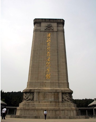 淮海戰役紀念塔位于江蘇省徐州市東南郊的鳳凰山東麓,紀念塔高38.15米(人民英雄紀念碑為37.94米),塔的上端雕刻著由五角星、步槍和松籽綢帶組成的塔徽。塔身正面鑲嵌著毛主席當年題寫的“淮海戰役烈士紀念塔”鎦金大字。塔座正面鐫刻著鎦金碑文,記述著淮海戰役的歷史經過以及烈士們前仆后繼、廣大群眾奮勇支援前線的英雄事跡。