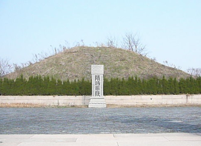 隋煬帝墓,位于陜西咸陽城西50公里處武功縣武功鎮西塬上,洛陽村東,樹有清乾隆時進士及第、兵部侍郎、兼副都御使、清乾隆陜西巡撫華沅書“隋煬帝之陵”石碑,陜西省人民政府 1957 年公布其為重點文物保護單位。據縣志記載:隋煬帝楊廣,于大業十四年(公元 618 年)被宇文化縊殺于揚州。
