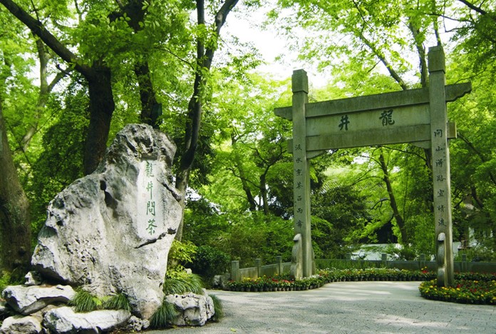 新西湖十景之一,是走訪龍井茶文化的著名景點(diǎn)。西湖龍井茶主要產(chǎn)于龍井村地帶,龍井的茶不僅匯茶之色、香、味、形的四絕于一身,而且集名山、名寺、名湖、名泉和名茶的五名于一體。而冠名的西湖龍井茶葉有獅、龍、云、虎、梅之別,以獅峰、龍井地之茶為最優(yōu),其中奧妙,唯有親去龍井村品茗問茶方可悟出,因此就有了“龍井問茶”之趣說。龍井泉水清澈甘洌,龍井茶更負(fù)盛名,人們爭(zhēng)先前來(lái)問詢,構(gòu)成了獨(dú)特龍井茶文化。