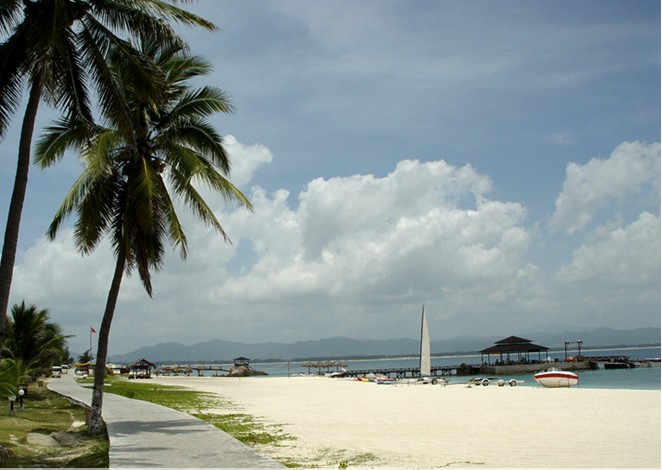 雖然現在三亞周邊原住的少數民族早已進入文明,甚至都很難尋覓,但你在這兒也能體驗他們的熱情,歌舞和工藝,透著原始味的手工黎錦和苗族的蠟染都是極好的記念品。一不小心,便會被站在花叢里面的黎家阿妹拉進她們的寮房,做做她們臨時的新郎或是被苗家的小姑娘拉到她的身邊套上民族服裝,照張合影。然后再去跳跳竹桿舞,看看正宗的上刀山,下火海。雖然這些已被商品化,但是看看他們的民俗,服裝、飲食等卻都很有意思的。