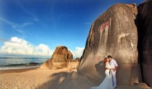 情人島,是經(jīng)歷了千百年潮起潮落洗禮卻依然矗立、靜靜相望的兩座大石。傳說是古時人們?yōu)榱思o念一對因相戀而被惱怒的龍王變成石頭的癡情戀人而起名的。現(xiàn)在這里成了蜈支洲島的一大景點,是青年男女耳語、聽濤的好地方。