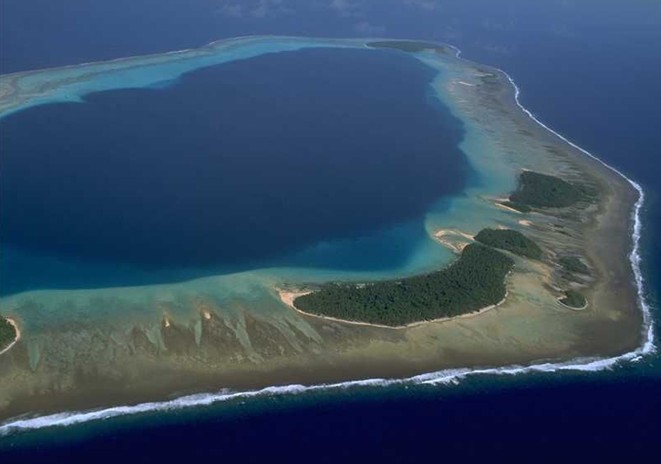 中沙大環礁是南海諸島中最大的環礁,全為海水淹沒,水深一般9~26米。大環礁東側是深而大的地殼斷裂帶,陸殼和洋殼接觸處以51°~58°陡坡下降到4000米海盆上。大環礁南部與南沙群島的雙子群礁間海域,是南海最深處(-5559米),熱流量、布格重力和磁力都異常偏高,可能與陸塊漂移有關。中沙群島中的暗沙邊緣突起、彼此間的斷塊又不相聯,因此造成許多獨立個體。斷缺部分成為出入□湖的天然水道。□湖內亦散布有暗沙,其中以漫步暗沙最淺,僅9米。