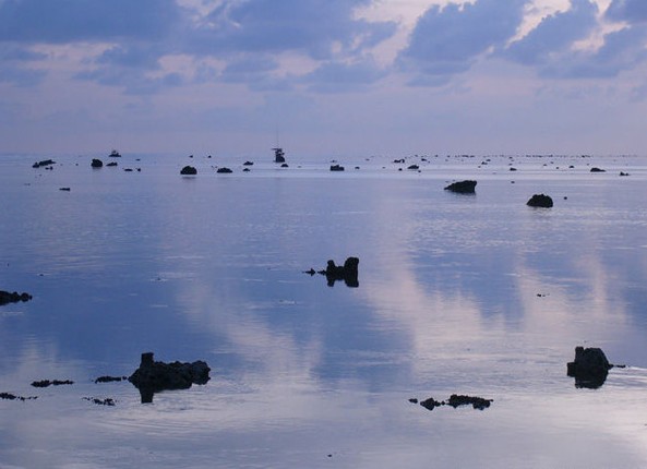 黃巖島是中沙群島中唯一露出水面的環礁,為海盆中的海山上覆珊瑚礁而成,位于中沙東側,距灘礁約300公里,狀似三角形,長約19公里,邊緣陡峭,□湖水色清綠,礁盤上分布有明顯可見的石柱狀珊瑚礁塊,最高者稱為“南巖”,高出海面約1.8米。黃巖島猶如一珊瑚巖柱,從4000米深的海盆直插聳立于海面。 中沙雖為隱伏在水中的暗沙群,但距海面較近,面積廣大,因而對海面狀況影響甚巨。天氣惡劣時,如漫步暗沙、比微暗沙波浪極大,灘岸附近海面為其所擾,海水顯得高而亂。暗沙所在的海區,海水為微綠色,而深海則呈碧藍色,極易分辨。故早在200余年前,中沙即被利用為航行走“外溝”的標志,由廣州、香港、上海、臺灣、日本等到新加坡的航線均經此而過。