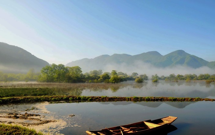 位于渝鄂交界處。是一片沼澤地—山澗盆地,是亞高山的一片濕地。面積3萬多畝,海拔1700米,面積36平方公里,南北長約15公里,東西寬約3公里,中間是一抹17平方公里的平川,四周高山重圍,在“抬頭見高山,地無三尺平”的神農架群山之中,深藏著這樣的處女平地極為少見,大九湖因其享有“高山平原”的美譽,并被稱為湖北的“呼倫貝爾”、“神農江南”,大九湖濕地公園總面積3萬畝,海拔1700米,園內共分布有高等植物141科366屬964種(含變種及栽培種),其中國家重點保護植物共5種,國家珍貴樹種3種,苔蘚植物13科18種。