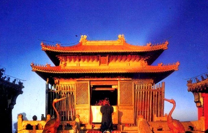 金殿:為首批全國重點文物保護單位。明代銅鑄仿木結構宮殿式建筑,位于天柱峰頂端的石筑平臺正中,面積約160 平方米,朝向為東偏南8°。殿面寬與進深均為三間,闊4.4米,深3.15米,高5.54米。四周立柱12根,柱上疊架、額、枋及重翹重昂與單翹重昂斗拱,分別承托上、下檐部,構成重檐底殿式屋頂。版權所有山東聊城聊之旅國際旅行社有限公司,轉載必究!正脊兩端鑄龍對峙。四壁于立柱之間裝四抹頭格扇門。殿內頂部作平棋天花,鑄淺雕流云紋樣,線條柔和流暢。地面以紫色石紋墁地,洗磨光潔。屋頂采用“推山”做法為特點。殿內于后壁屏風前設神壇,塑真武大帝坐像,左侍金童捧冊,右侍玉女端寶,水火二將,執旗捧劍拱衛兩廂。壇下玄武一尊,為金婉合體。壇前設香案,置供器。神壇上方高懸餾金匠額,上鑄清圣祖愛新覺羅•玄燁手跡“金光妙相”四字。殿外檐際,懸盤龍斗邊餾金牌額,上豎鑄“金殿”二字。殿體各部分件采用失蠟法鑄造,遍體餾金,無論瓦作、木作構件,結構嚴謹,合縫精密,雖經五百多年的嚴寒酷暑,至今仍輝煌如初,顯示中國鑄造工業發展的高度水平,堪稱現存古建筑和鑄造工藝中的一顆燦爛明珠。