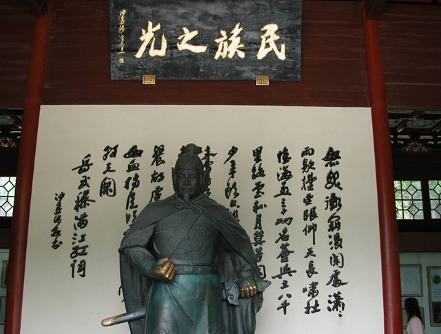 岳飛是南宋初抗擊金兵的主要將領, 但被秦檜、張俊等人以“莫須有”罪名誣陷為反叛朝廷,陷害至死。岳飛遇害前在供狀上寫下“天日昭昭,天日昭昭”八個大字。 岳飛遇害后,獄卒隗順冒著生命危險,背負岳飛遺體,越過城墻,草草地葬于九曲叢祠旁。2l年后宋孝宗下令給岳飛昭雪, 并以五百貫高價懸賞求索岳飛遺體,用隆重的儀式遷葬于棲霞嶺下,就是現在岳墳的所在地。