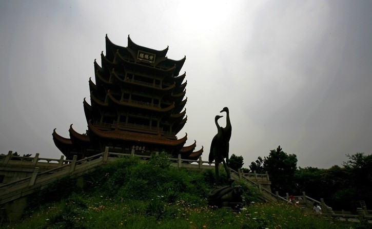 過去的仙人已經(jīng)駕著黃鶴飛走了,這里只留下一座空蕩蕩的黃鶴樓。