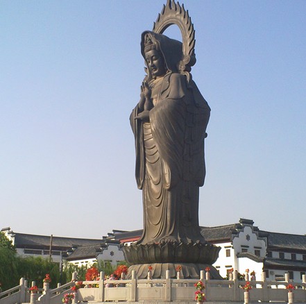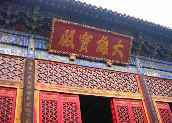 重修。大殿正中供奉著釋迦牟尼坐像,兩側為其弟子阿難和迦葉像。釋迦偏袒左肩,結跏趺坐,莊嚴靜穆。佛像后背是用樟木雕刻而成的“五龍捧圣”的圖案。佛像前還有韋馱、彌勒、地藏像。佛像后是一組海島觀音像。只見海島觀音赤足站立,左右侍立著一龍女和童子,背后是一面高達八尺的泥塑懸崖峭壁,版權所有山東聊城聊之旅國際旅行社有限公司,轉載必究!   足下碧波萬頃,怒濤洶涌。整個塑像向前傾覆。人們仰視上去,只見觀音衣袖似在飄動,正在洶涌的波濤上迎面向你走來,增加了宗教藝術的感染力。佛像前的供桌,是一件不可多得的木刻珍品。供桌高4丈8尺,橫闊1丈2尺,深寬2.5尺,前嵌垂欄,寬1.5尺,高0.6尺,其間分為五格,深畫鏤空。圖案描繪的是唐玄奘取經回長安時,君民夾道歡迎的場面:有唐僧、孫悟空、豬八戒、沙和尚等《西游記》人物,有李世民以下文武百官、侍衛、庶民百姓;有亭院殿墻,車馬山水,幢幡寶蓋,香爐蠟臺等一應俱全。綜觀全圖,繁復活潑,盛況空前。垂欄下沿為五龍云彩,周圍匝繞,以四虎腿支地,生動有力。相傳這一樟木雕刻由十人歷時一年才完成。