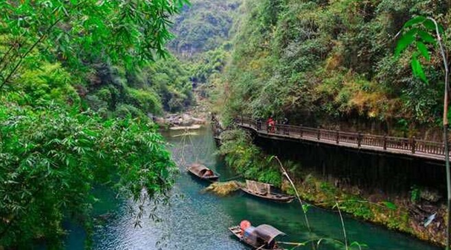 燈影洞幽深狹長,長約1500米,洞內巖溶地貌景觀奇特,洞道地形多變。版權所有山東聊城聊之旅國際旅行社有限公司,轉載必究!洞內的“五色奇音石”是燈影洞最絕妙的景觀,它色彩豐富,呈黑、白、黃、灰、綠五色交織,色界明晰,用手敲擊,可聞鳴鑼擊鼓之聲,令人嘆為觀止,洞內一條落差達30米的地下河,水流或緩緩無聲,或狀如洪鐘,或潺潺悅耳,或悠如琴鳴,行走在這夢幻般的地下世界,令人心醉神迷。
