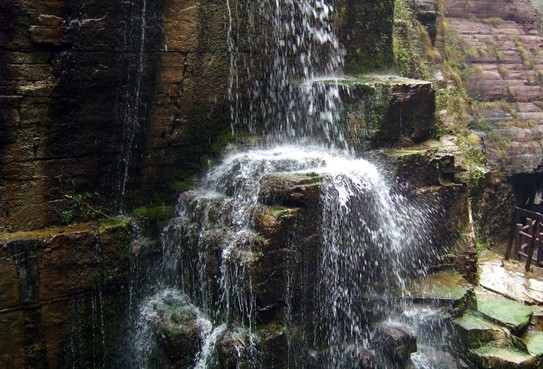 13.天然壁畫,泉水在巖壁上流動,撒下點點水珠,水珠在陽光的照射下,五彩繽紛,流光異彩,滿目生輝,再加上綠色苔蘚植物的映襯,形成了獨特的天然壁畫。