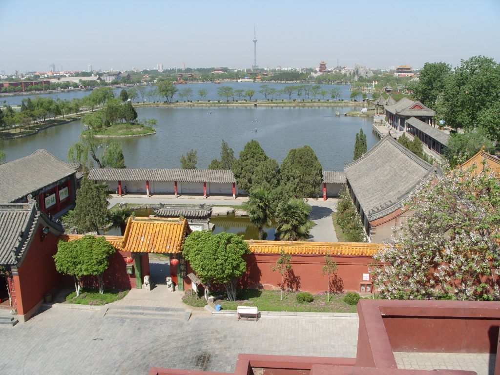 大殿是木結構,重檐歇山式建筑,很壯觀。游人登上平臺,入殿觀看陳列的文物后,多在石欄前眺望開封古城景色。龍亭前有一條筆直的大道,道旁有兩個東西對峙的湖,東為潘湖,西為楊湖。傳說,東湖為宋朝“太師”潘仁美的府第,他陷害忠良,是個奸臣,宅院里的湖水是渾的;西湖為宋朝抗遼名將楊業的府第,他舍身救國,是個忠臣,宅院里的湖水是清的。這個說法沒有科學根據,但反映了人們對忠奸的態度和感情?,F在龍亭,潘、楊兩湖,以及龍亭后面的假山花園,都辟為龍亭公園。