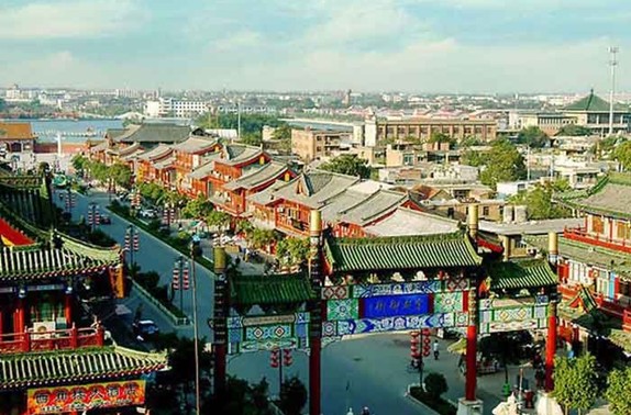 新建的御街系在原御街遺址上修建。南起新街口,北至午朝門,全長400多米。雖不及古御街之長,但其規模和氣勢在國內尚屬少見。御街南端豎立著一座高大的牌坊,前面各立一尊石雕大象,上騎武士,手持長槍,肅穆威嚴。兩側角樓對稱而立,樓閣店鋪鱗次櫛比,其匾額、楹聯、幌子、字號均取自宋史記載,古色古香。版權所有山東聊城聊之旅國際旅行社有限公司,轉載必究!50余家店鋪經營開封特產,傳統風味,古玩字畫,各具特色。漫步御街,仿佛一步跨進歷史,令人充滿對昔日宋都繁華景象的無限遐想。