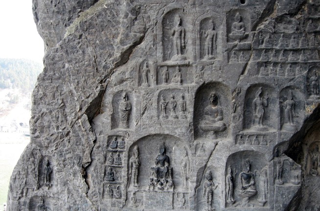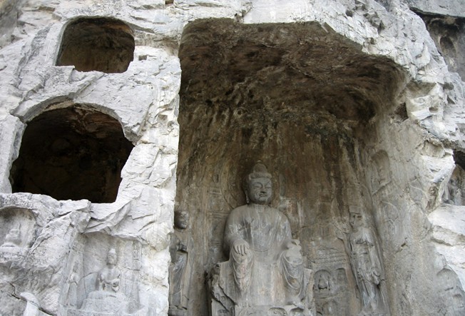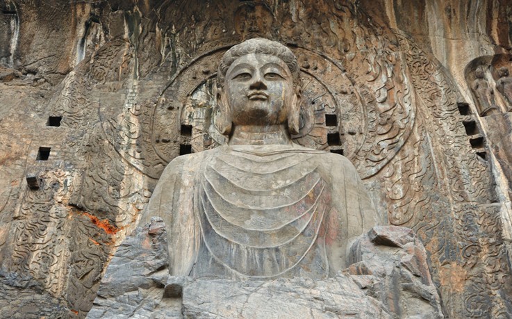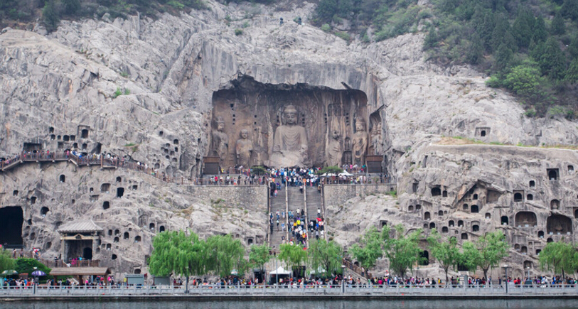 門石窟是中國石刻藝術寶庫之一,位于河南省洛陽市南郊伊河兩岸的龍門山與香山上。開鑿于北魏孝文帝遷都洛陽之際,之后歷經東魏、西魏、北齊、隋、唐、五代的營造,南北長達1公里,至今存有窟龕2345個,造像10萬余尊,碑刻題記2800余品。其中“龍門二十品”是書法魏碑精華,褚遂良所書的“伊闕佛龕之碑”則是初唐楷書藝術的典范。龍門石窟延續時間長,跨越朝代多,以大量的實物形象和文字資料從不同側面反映了中國古代政治、經濟、宗教、文化等許多領域的發展變化,對中國石窟藝術的創新與發展做出了重大貢獻。2000年入選世界文化遺產。