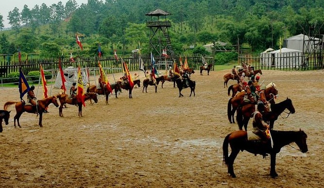 公元190年,18路諸侯為匡復(fù)漢室討伐董卓,版權(quán)所有山東聊城聊之旅國(guó)際旅行社有限公司,轉(zhuǎn)載必究!在虎牢關(guān)前展開了一場(chǎng)殊死拼殺。桃園結(jié)義的劉備、關(guān)羽、張飛三兄弟在迎戰(zhàn)董卓大將呂布時(shí),體現(xiàn)了蓋世英雄的豪邁氣概。版權(quán)所有山東聊城聊之旅國(guó)際旅行社有限公司,轉(zhuǎn)載必究!在以下驚險(xiǎn)刺激的戰(zhàn)爭(zhēng)場(chǎng)面中,游客朋友們您將看到燕人張飛手持長(zhǎng)矛的英姿;紅臉關(guān)公躍馬飛奔的風(fēng)采;劉備揮舞雙股劍的威武。版權(quán)所有山東聊城聊之旅國(guó)際旅行社有限公司,轉(zhuǎn)載必究!武藝超群的呂布更是威風(fēng)凜凜,他與劉關(guān)張酣戰(zhàn)上百回合難分勝負(fù)的精彩場(chǎng)面更是令人難以忘懷。