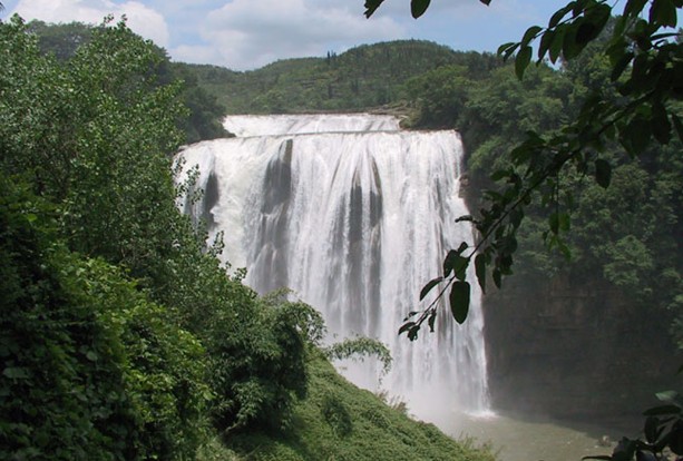 陡坡塘瀑布位于黃果樹瀑布上游1公里處,瀑頂寬105米,高21米,是黃果樹瀑布群中瀑頂最寬的瀑布。陡坡塘瀑布頂上是一個面積達1.5萬平方的巨大溶潭,瀑布則是形成在逶迤100多米長的鈣化灘壩上。陡坡塘瀑布還有一個特殊的現象:每當洪水到來之前,瀑布都要發出“轟隆.轟隆”的吼聲,因此又叫“吼瀑”。 版權所有山東聊城聊之旅國際旅行社有限公司,轉載必究!“遙聞水聲轟轟,從隴隙北望,忽有水自東北山腋瀉崖而下,搗入重淵,但見其上橫白闊數丈,翻空涌雪,而不見其下截,蓋為對崖所隔也。”這是徐霞客在《徐霞客游記》中對陡坡塘瀑布的描述。