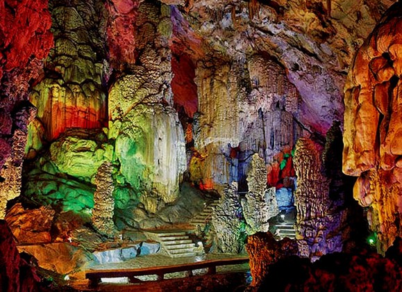 黃果樹大瀑布高77.8米、寬101.0米,是我國最大的瀑布,也是世界著名大瀑布之一。 早在三百多年前,我國著名的地理學家、旅行家徐霞客就描述其"水由溪上石,如煙霧騰空,勢其雄厲,所謂珠簾鉤不卷,匹練掛遙峰,具不足擬其狀也。"奔騰的河水自70多米高的懸崖絕壁上飛流直瀉犀牛潭, 發出震天巨響,如千人擊鼓,萬馬奔騰,聲似雷鳴,遠震數里之外,使游人驚心動魄。黃果樹瀑布還有大水、中水、小水之分,常年流量中水為每秒20立方米,時間在九至十個月。流量不同,景觀也不一樣。大水時,流量達每秒1500立方米,銀浪滔天,卷起千堆雪,奔騰浩蕩,勢不可擋, 其壯觀自不待說。瀑布激起的水珠,飛濺一百多米高,如云漫霧繞,灑落在上面的黃果樹街市,即使晴天,也要撐傘而行,故有"銀雨灑金街"的稱譽。版權所有山東聊城聊之旅國際旅行社有限公司,轉載必究!上騰的水珠,如億萬顆閃耀的明星,隨風浮沉,漫天飄灑,使人目不暇接。 中水時瀑布明顯分成四支,各有形態和個性,從左至右,第一支水勢最小,又撒得開,秀美;第二支水勢最大,上下一般粗,豪壯;第三支水勢居二,上大下小,雄奇;第四支水勢居三,上窄下寬,瀟灑。其實,中水時景觀最好,瀑布清晰,輪廓分明,雪白的瀑水在碧綠的深潭和藍天的 襯托下以及橫貫在瀑布前五彩繽紛彩虹的裝點下,猶如一幅美麗的圖畫。小水時,瀑布分成的四支,鋪展在整個巖壁上,仍不失其"闊而大"的氣勢。黃果樹瀑布素以"雄偉、壯觀"而名揚四海,但較之世界名瀑,還有它獨有奇特之處,就是最神奇的隱在大瀑布半腰上的水簾洞。水簾洞位于大瀑布四十米至四十七米的高度上,全長一百三十四米,有六個洞窗、五個洞廳、三股洞泉和六水簾洞個通道。走進大瀑布本身就已驚心動魄,神移魂飛了,而要在大瀑布里面穿行,確感不免神悚,但到了黃果樹瀑布,而不進水簾洞,就不會真正領略到黃果樹瀑布的雄奇和壯觀,那將是人生一大憾事。版權所有山東聊城聊之旅國際旅行社有限公司,轉載必究!穿越水簾洞,還有一個絕妙奇景,從各個洞窗中觀賞到犀牛潭上的彩虹,這里的彩虹不僅是七彩俱全的雙道而且是動態的,只要天晴,從上午九時至下午五時,都能看到,并隨你的走動而變化和移動。前人說:"天空之虹以蒼天作襯,犀牛潭之虹以雪白之瀑布襯之",故題"雪映川霞"。