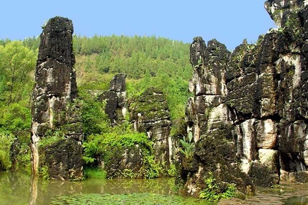 天星景區是黃果樹風景區中已全部開發的景區,景區規劃面積7平方公里,開發游覽面積4.5平方公里,分 為三個相連的片區,即:天星盆景區、天星洞景區和水上石林區。這里石筍密集,植被茂盛,水到景成,集山、水、林、洞為一體。天星盆景區長約800米,位于500米長伏流表面和河岸西側。有大大小小的天然山石及水石盆景。一條三公里的石板小道,穿行于石壁、石壕、石縫之中,逶迤于盆景之上。沿小道游覽,抬頭是景、低頭是景,前后左右都是景,仿佛到了天上的仙境,地下的迷宮。漫步其間,既領略山水之美、又可品味石林之雄奇。版權所有山東聊城聊之旅國際旅行社有限公司,轉載必究!近處石林,遠處群山,倒映碧水之上,展現在眼前的是一幅色彩淡雅景色協調的天然山水畫。有的還可撐上竹筏,穿行于峽谷、石林之中,真可謂輕舟蕩碧波,人在畫中游。天星盆景區還有美女榕、仙山群掌、歪梳石、熊貓抱竹、雄鷹展翅等形態十分畢真的天然景觀。天星洞景區在天星景區中段,除游覽觀賞洞內的鐘乳石外,洞外景觀也很特別,一線天高長均在二十多米而且狹窄;冒水潭是暗河出口,大水時,憑伏流沖擊的壓力,水可以沖起五六米高,甚為壯觀。水上石林區,此段河床寬闊達400米,面積約0.4平方公里的石林就長在河床之中,任河水長年沖刷。石林間長著大片的仙人掌和小灌木,終年點綴著綠蔭。冰冷的石頭上,展現的都是生命的繁榮,所謂"石上流水,水上有石,石上有石,石上又有樹。"水上石林區有很多景觀,如群榕聚會、根王、根墻屏障、盤根畫壁、仙女飛天等,銀鏈墜潭瀑布和星峽飛瀑也分別處在水上石林的左右二側。 銀鏈墜潭瀑布,位于天星景區水上石林左上方。在黃果樹瀑布群中,它既不是以高取勝,也不是以闊或大驚人,而是以它那千絲萬縷的情態和如泣如訴的瀑聲,讓人看見就不想離開。版權所有山東聊城聊之旅國際旅行社有限公司,轉載必究!這個瀑布只有十余米高,上面成漏斗形,底部是槽狀溶潭。在潭沿面上隆起的石包,象一張張下覆的蓮葉,交錯搭連,河水在每一張葉面上均勻鋪開,縱情漫流,象千千萬萬條大大小小的銀鏈,輕音嚷嚷地緩緩墜入溶潭,永遠沒完沒了。