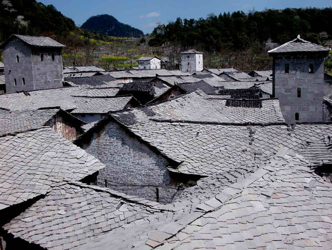 古屯堡寨子位于安順市七眼橋鎮(zhèn)云鷲山峽谷中的云山屯。屯堡人是600年前屯田戍守安順的江南軍隊后裔,其村落依山而建,街巷縱橫交錯,寨中的每一組建筑、碉樓構成小小的四合院。而在碉樓或圍墻之上,設有射擊孔,融防御、居住為一體。