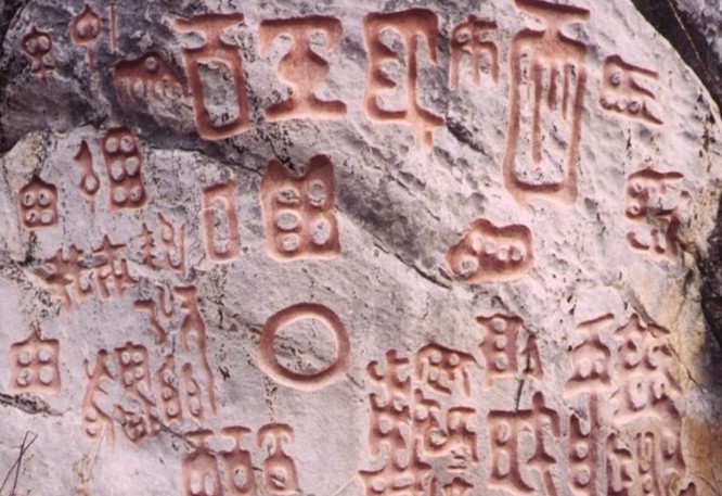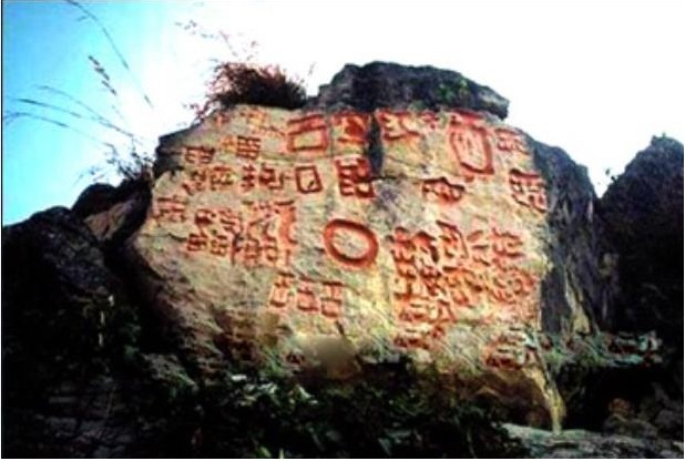 莊善詩云:是孰紅崖字間奇,為殷為漢尚猜疑。何因禹跡窮梁跡,曬甲于就竟屬誰?天書的文學,無論是堯舜殷周,還是秦漢宋明;無論古文馴釋,還是秘符破解,大多數(shù)學者都在侖頡夫子所造的漢字中遨游,認定天書非漢文字莫屬。其實這種自負的結(jié)果,除了固李自封,裹足不前外,無法開展破解天書的主體思維。清代學者趙之謙,根據(jù)關(guān)嶺地區(qū)自古的居民多是少數(shù)民族的特點,提出了天書文字是"苗民古語"新穎看法。當然,這里苗民"工字,泛指貴州境內(nèi)的少數(shù)民族。民國初年的教育總長任可澄發(fā)揮了"苗民古書"的觀點,認為天書"非篆非隸非八分,不僅非后漢文學,并非漢族文字"。《貴州通史.金石志》亦云:"字勢頗類蘩文"。"茲地自漢以來,久為盧鹿族(即今彝族)居地,或竟出至于此族。"