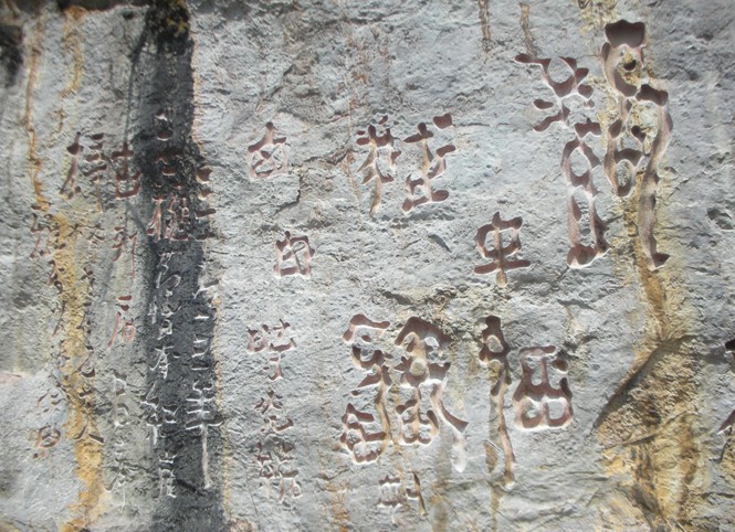 從此,天書的面目即為翟鴻錫本所示,那些附庸風雅的官僚成為了千夫唾棄的罪人。盡管如此,清未還是有位叫徐印川的貴州提督,敢冒天下之大不韙,在天書崖面上,手寫了一個草書的"虎"字,以求同天書千古不朽。這位徐提督實乃一位討厭的古跡破壞者,在筑地名勝風景區(qū),仙人洞的山壁上,還有其題詠景物的石刻詩。(有專家認為草書"虎"字,乃周達武所為,權(quán)當一說吧。)