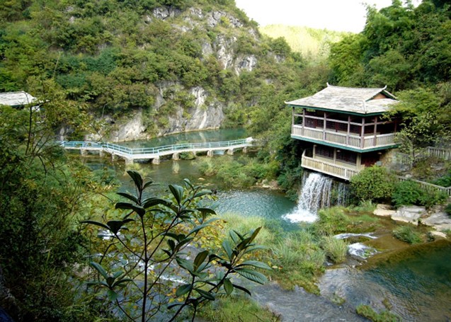 天河潭風景區位于貴陽市花溪區石板鎮境內,距貴陽市24公里內兼具黃果樹瀑布之雄、龍宮之奇與花溪之秀,集飛瀑、清泉、深潭、奇石、怪洞與天生石橋于一身,渾然天成;農舍水車,小橋流水,野趣盎然,清幽宜人。