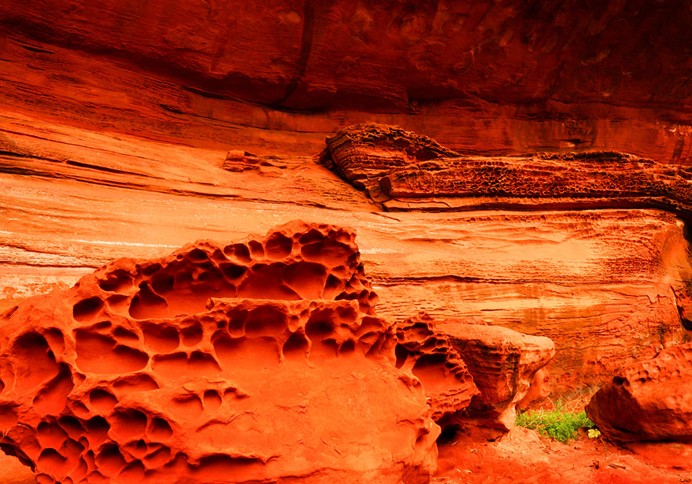 紅石野谷位于貴州省遵義市赤水市大同古鎮華平河畔,紅石野谷距市區16公里,紅石野谷森林覆蓋率達95%以上。紅石野谷以紅色蜂窩狀的丹霞壁畫石刻長廊為特色景觀,那如佛、如蛙、如鹿等各種奇形怪狀、千姿百態的紅石與桫欏,茂密的竹林、清澈見底的溪泉瀑布,仿佛把人帶到了原始、自然、幽靜的侏欏紀時代。