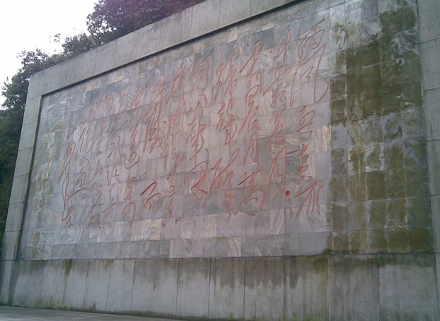 毛澤東填有《憶秦娥•婁山關》詞一首,描寫紅軍指戰員英勇鏖戰的壯烈情景。現以行草手書體放大鐫于高14米,寬25米的大理石碑上,益增雄關聲色。