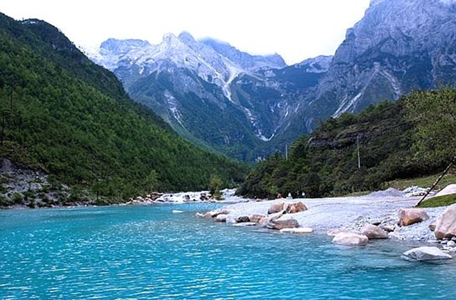麗江白水河位于玉龍雪山風(fēng)景區(qū)云杉坪旁,因其水質(zhì)未受任何污染,加之其河床、臺地都是白色大理石、石灰?guī)r碎石組成這條清洌無比的山溪,水也仿佛成了白的,故名白水河。麗江白水河是玉龍雪山融化的冰川雪水匯成的河流,沿著山谷層疊跌躍而下,水清澈墨綠,據(jù)說白水河的水來自玉龍之口,帶有靈性,還是一處愛情圣地,冰雪從峰巔融化流淌而下,一落千丈,遇陡崖成瀑,過淺灘成溪,穿林過巖,清清澈澈地歡跳在人們面前。窺望其源,積雪、冰川、冰塔盡在眼底。白水河離開甘海子繼續(xù)北走,前行約5公里左右,拐過一個彎道,便能看到山下有一條從雪山流出的河水,經(jīng)此向東流去,這就是白水河。經(jīng)過白水河橋,你可在此停留,沿橋旁右邊的道路下行,就可直抵白水河邊。白水河首先給你的是清洌明凈的印象。河水系雪山積雪融化后又經(jīng)巖層過濾,成泉水涌出而最終匯成此河。即使是夏季,你赤足涉河,那刺骨的感覺總會讓你銘記這雪山泉水的品質(zhì)。白水河水質(zhì)純凈,未受任何污染,河水沖涮的卵石,清澈明晰,因為白石為底,水流其上,水的顏色更加明凈,白水河給你的第二個印象是秀麗神奇,版權(quán)所有山東聊城聊之旅國際旅行社有限公司,轉(zhuǎn)載必究!沿河溪水瀑布層疊,近兩岸植被繁茂,遠(yuǎn)處雪峰背襯。白水河蜿蜒自雪山深處流出,你可步行或騎馬逆流而上,觀賞沿岸風(fēng)光,探尋雪山之下河水形成的初始情況,并可親口嘗一嘗這天然的純凈水,帶上這份清爽的感覺。白水河從橋下流過,一直往東,在不遠(yuǎn)處與雪山流出的另一條河水交匯。這條河水也是雪山積雪融化成泉,最終匯成溪水的水質(zhì)明凈,因水下的卵石黑色居多,水流其上,水的顏色相映成黑色,故名黑水河,白水河與黑水河交匯,便成了黑白水河。雪山以萬年古雪和黑白之石孕育出的黑白水,納西民族對它有著特殊的情感,東巴經(jīng)《魯般魯饒》卷中以黑白來解釋世間萬物,指出陰陽調(diào)和,黑白不分開,世間就和諧有序,眼前的黑白水,是一條自然之河,愛情之河,對你來講,黑白水寓意著行路無阻攔,過河沒障礙,旅途保平安。