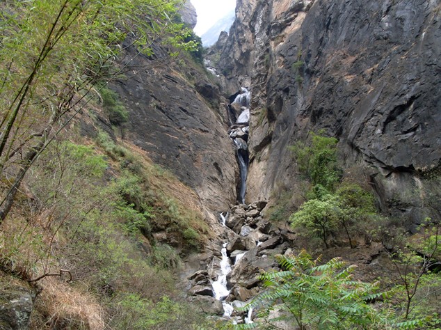 續(xù)前行,到”中虎跳“。這里喝崖排空,或直刺青天,或斜撲江口,寬闊浩蕩的江水,遇到危崖的擠壓與阻攔,似乎變得怒不可遏,它聚集力量,向崖石不斷發(fā)起沖擊,狂濤洶涌,飛瀑騰空,空谷轟鳴,聲震山谷。江底驚濤裂岸,崖頭山泉噴瀉。當(dāng)你在哈巴雪山腰,沿著壁間蹬道小心攀行時(shí),常常會(huì)遇到飛泉流瀑,從你頂上掠過,猶如進(jìn)入水簾洞中。