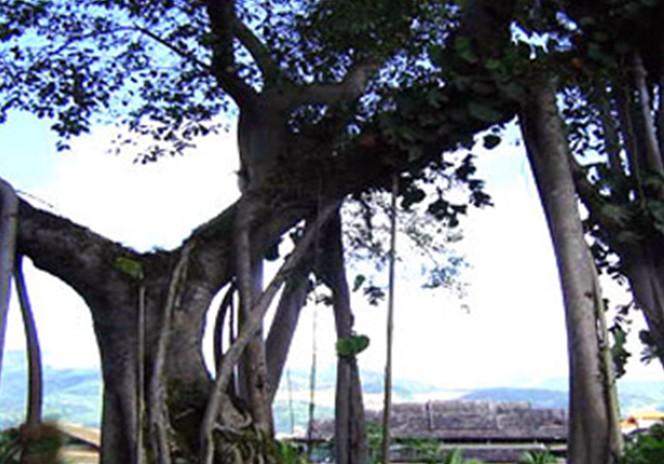 勐養(yǎng)象形樹距離景洪縣勐養(yǎng)鎮(zhèn)200多米,是一株奇特的百年古榕,樹高20多米,冠幅寬30多米,兩根粗大的寄生根,扎于地下,氣生根形似大象,形成一座汽車也開得過去的圓形大拱門,主干根部長出的一大片盤根,就像一座天然假山。