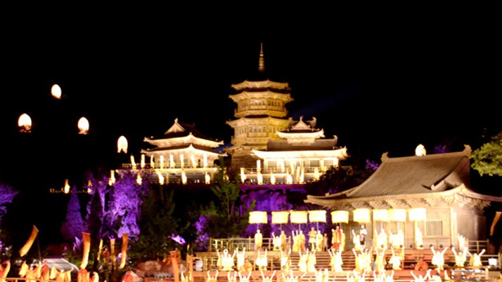 《禪宗少林•音樂大典》演出規(guī)模宏大,音畫一體,近600人的禪武演繹,少林僧侶的現(xiàn)場唱誦,春夏秋冬的景觀變化,直指心性的佛樂禪音,合成了中岳嵩山輝煌的交響。每天晚上8:00的定時演出,成為中原文化旅游的一大亮點(diǎn)。