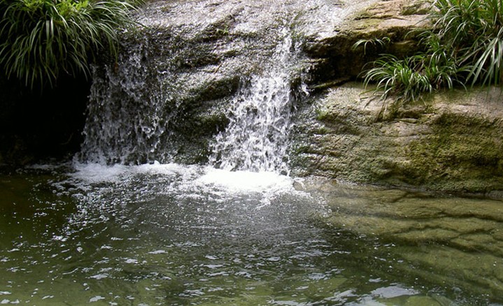 在椎?;ㄖ鶅蓚炔贿h處有一天然石門,高350多米,人曰“玉泉門”。玉泉門左右絕壁千仞,絕壁上多生青松、灌木,石門由距今五六億年前的巨巖構成。巖壁陡峭如峭,兩扇石門恰似半開半掩的門扇,清爽的山風直從石門里吹出來,給人送來一陣涼意。誰若在這靜謐的幽谷中大喊一聲,空曠的峽谷便久久地蕩起悠悠的回音。抬頭仰望,巨壁夾天,大有巖山壓境之勢,令人驚恐。真是“峰與天相連,人在窯中行”?。∮袢T為深淵奇峽,淵谷很窄,僅十余米,宛如古關隘。清澈的玉泉溪從這關隘巖門中擠石而出,滑下石級,叮咚之聲,如撥琴弦。在玉泉門內藏著一汪潭池,潭邊巖石上布滿絨絨的絲苔,經水浸潤,綠得晶亮,象孔雀綠羽。潭水也著碧綠色,如同一顆綠珠、一塊翡翠。進入玉泉門,版權所有山東聊城聊之旅國際旅行社有限公司,轉載必究!然明朗,別有洞天。溯玉泉溪而上,兩岸巧石寄花應有盡有,一步一景,美不勝收