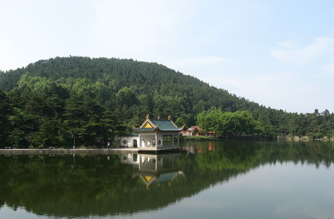 如琴湖,建于1961年,面積約110000平方米,蓄水量約1000000立方米。因湖面形如小提琴,故名。湖座落西谷,峰嶺圍抱,森林蓊蔚,環(huán)境幽雅。湖心立島,島內(nèi)有許多人工飼養(yǎng)的孔雀,所以名為孔雀島,曲橋連接,上綴水榭,形成綠水青山,相映成趣,臨立島上縱覽四周妙處橫生。
