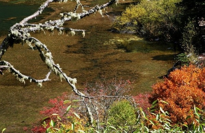 從跑馬山腳左側近泥巴山或駟馬橋處上山,穿過杜鵑花、紅白刺玫花叢錯落的山徑,經(jīng)吉祥嘛尼堆5處,約6小時,就到了海拔4100米的冰川遺跡--五色海。五色海面積0.11平方公里,三山陡峭環(huán)立。東山崖上瀑布飛流,珍珠萬顆直瀉湖中,湖水澄澈似鏡,朝陽初臨,瑞氣四集,飛瀑倒映湖中,玉兔捧佛隱去,陽光五彩繽紛。