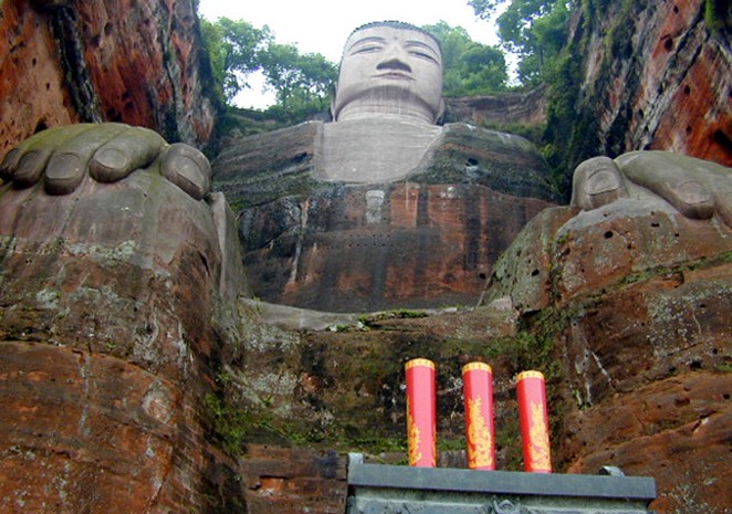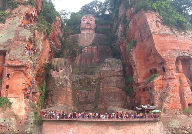 樂山大佛,又名凌云大佛,地處中國四川省樂山市,岷江、青衣江和大渡河三江匯流處,與樂山城隔江相望。樂山大佛雕鑿在岷江、青衣江和大渡河匯流處巖壁上,依岷江南岸凌云山棲霞峰臨江峭壁鑿造而成為彌勒佛坐像,是唐代摩巖造像的藝術精品之一,是世界上最大的石刻彌勒佛坐像,國家5A級旅游景區 。